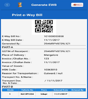 e-Way Bill number generated